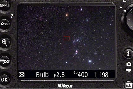 天体摄影中经常进行长时间曝光拍摄。将快门速度设置为30秒以上进行长时间曝光时*,可预览30秒曝光时间获得的虚拟影像(此时预览的虚拟图像可能与拍摄成像不同),便于进行对焦和取景。