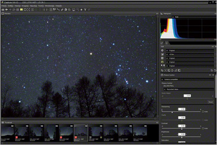 尼康的RAW图像包含丰富的信息。该软件可以充分利用这些信息,开发RAW(NEF/NRW)文件的功能。天体摄影中通常使用RAW文件进行处理,以便保持图像的高品质,并且可以随意调整曝光补偿、白平衡和色调,同时进行降噪处理、色差校正和暗角控制。可利用优化校准修饰图像,达到预期目的。D810A支持优化校准系统中包含平面选项和清晰度参数。安装捕影工匠后,可以对拍摄后的RAW文件(仅限NEF)图像运用该平面选项和清晰度参数。适合以0.25的增量进行调整。