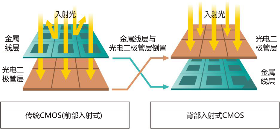 CMOS传感器采用背部入射式,其高感光度的画质得到普遍好评,具有良好的高速性能。背部入射式通过在布线层上配置受光面来直接捕获光线,因此在高感光度下也能以高品质拍摄图像。