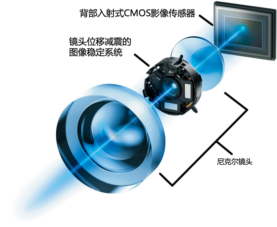 ・尼克尔镜头、EXPEED影像处理器以及约1,605万有效像素*3的背部入射式CMOS传感器