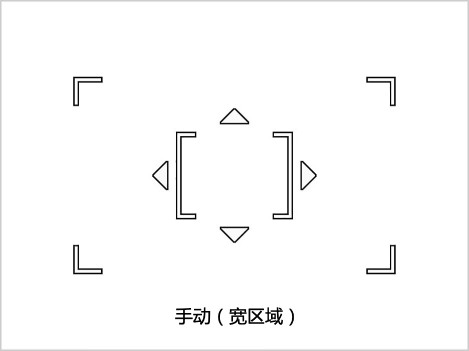 通过手动方式操作的“自动对焦区域”的菜单中,根据拍摄对象的大小可从手动(点)、手动(标准)和手动(宽)三种模式中选择。