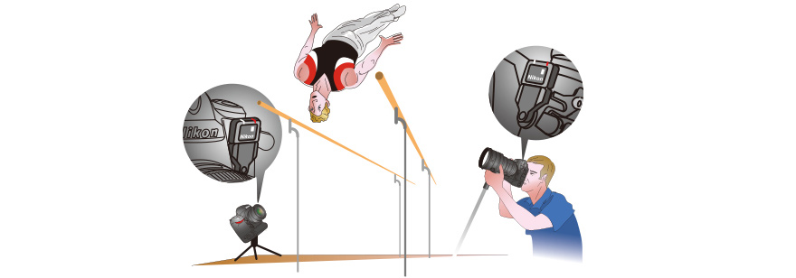 通过WT-6无线传输器、WR-1或WR-R10无线遥控器(均需另购)连接多台相机后,可以在同步快门释放模式下更灵活地进行控制。可以开启或关闭同步功能,也可以对自定义按钮Pv、Fn1和Fn2预先指定中断功能。启用同步功能后,可按下自定义按钮中断同步,以便单独隔离和触发主相机或遥控相机的快门释放。关闭同步释放时也可以进行中断,以便同步释放主相机和遥控相机或者只释放遥控相机。