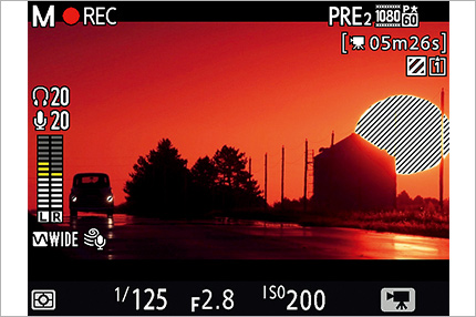 D5搭载的内置立体声麦克风能够实现立体声音频录制,还可兼容ME-1立体声麦克风和ME-W1无线麦克风(均需另购)。在拍摄动画时,麦克风的灵敏度水平可调节20等级,并通过音频电平指示器进行确认。您可以使用第三方耳机进行声音监控(音量可调节30等级)。选择适当的频响功能。录制音频范围较宽时,从音乐到城市街道的熙攘声,选择“宽范围(宽泛级)”。另外“音域(人声级)”功能针对人声语言的录制进行了优化。使用内置麦克风时还具有降低风噪功能。