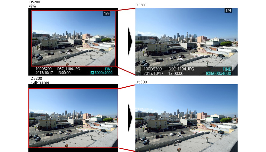 D5300配备了一款五面镜,它拥有经过改进的约0.82x放大倍数,同时保持着约95%的画面覆盖率,为您提供清晰准确的视图,使拍摄更舒适。