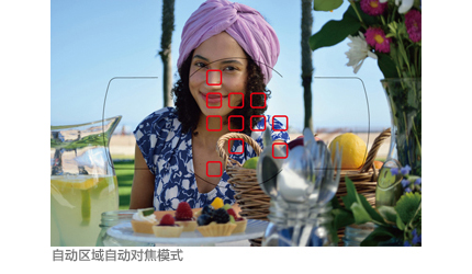 画面任意位置对比侦测AF(选择脸部优先AF 或对象跟踪AF 时,照相机自动选择对焦点)