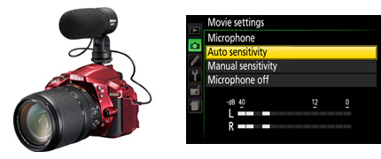 欣赏视频时,音质的好坏很重要。为实现效果,D5300配备了内置扬声器,可自动控制,或手动控制,一共20级递增。音量在动画拍摄前或拍摄中在16 x 9的液晶显示屏上都能很容易看到和确认,控制起来很舒适。