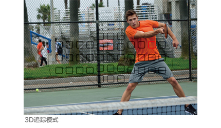 适用于拍摄移动中的对象。使用所有39个焦点追踪对象。使用选定焦点进行对焦后,当将快门释放按钮按下一半时,焦点自动变为根据对象的运动追踪它。