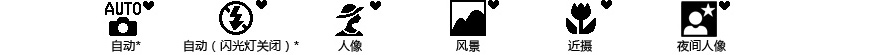 自动,自动带防红眼,自动慢同步,自动慢同步带防红眼,补充闪光,防红眼,慢同步,防红眼慢同步,慢后帘同步,后帘同步,关闭