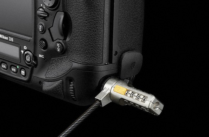 为了使D6安全防盗,尤其是当远程拍摄或者放在新闻发布室时,照相机采用肯辛通(Kensington®)锁插槽以实现防盗布线。这样一来,摄影师就可以专注于工作,远离设备时也不担心。