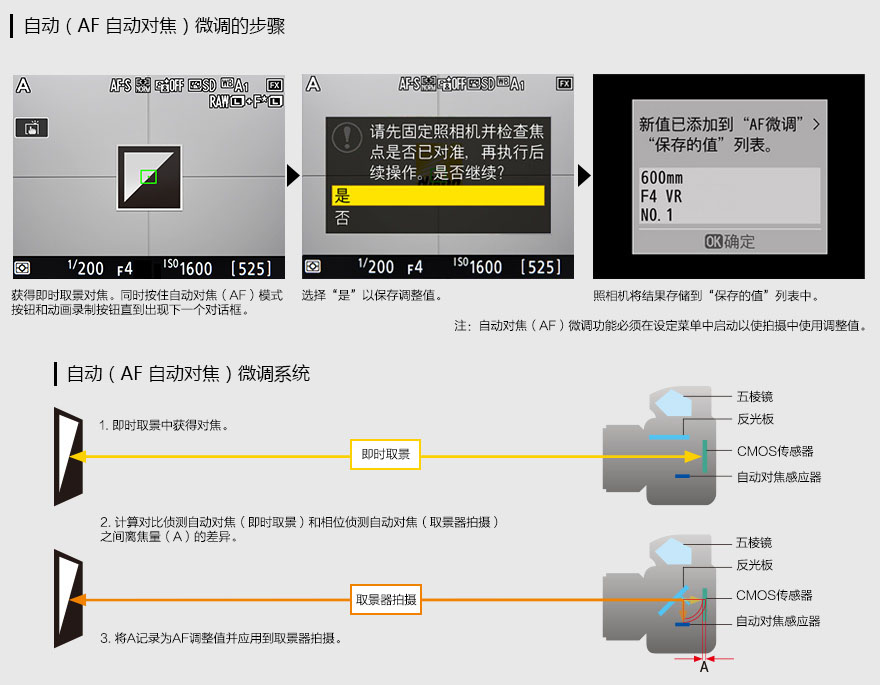 准确自动对焦(AF)是利用 D850 高像素优势的关键。为了实现准确对焦,D850 的自动(AF 自动对焦)微调对您使用的多款镜头进行微调。简化过程包括实现即时取景的对焦,以及让照相机自动获得对焦后保存自动对焦(AF)调整值。