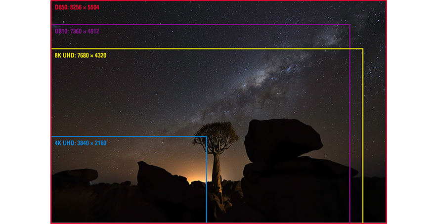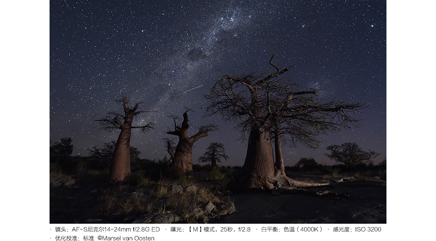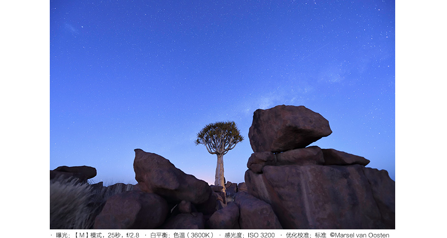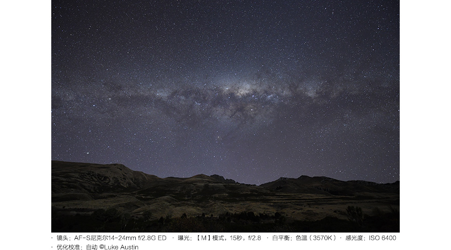 捕捉繁星点点的夜空时,您可能希望尽量避免轻微的图像模糊来发挥约4,575万有效像素的优势。D850即时取景模式下的静音拍摄功能*1采用了电子快门来取代触动反光板或快门移动,因此不会产生机械振动。摄影师能以约4,575万有效像素捕捉精细细节,并且非常安静。该模式能以约6幅/秒的速度连拍,DX影像区域下则能以约30幅/秒*2的速度拍摄约860万像素的照片。