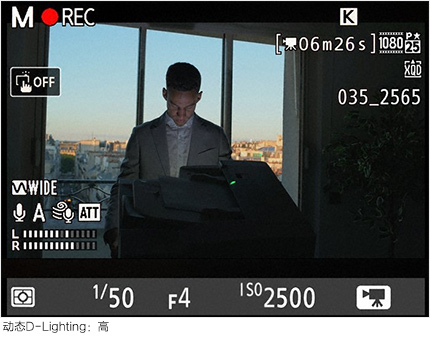 许多专业摄像师使用手动对焦来实现准确对焦。D850在全高清和高清模式下提供对焦轮廓显示,便于确认手动对焦。照相机侦测场景的高对比度边缘,确认合焦后以指定的颜色加以显示。用户根据拍摄对象的色彩可选择以红、白、黄或蓝色显示,以及以三种侦测灵敏度进行调整。为了方便用户,该对焦轮廓信息将不会被记录。