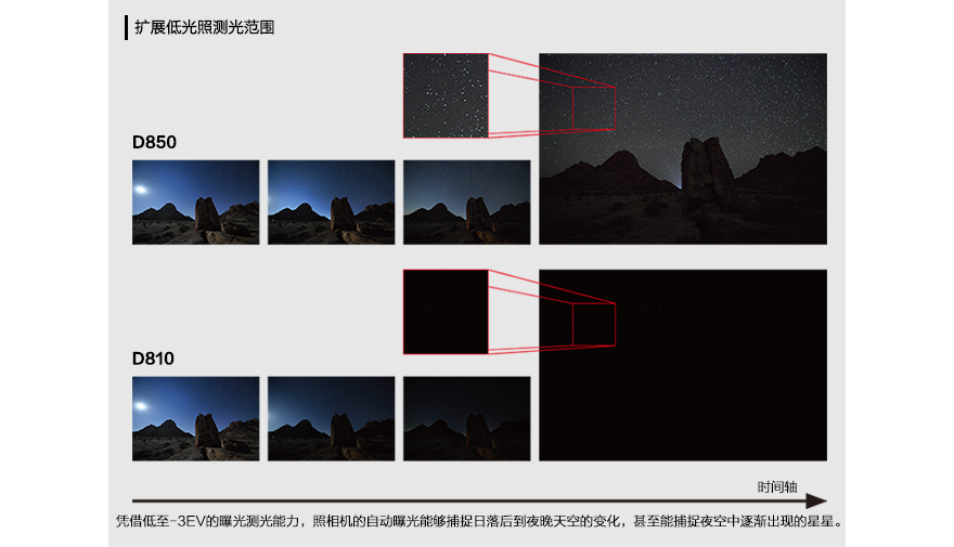 * 在尼康测试环境下:ISO 100, f/1.4镜头, 20°C,使用矩阵测光或中央重点测光。