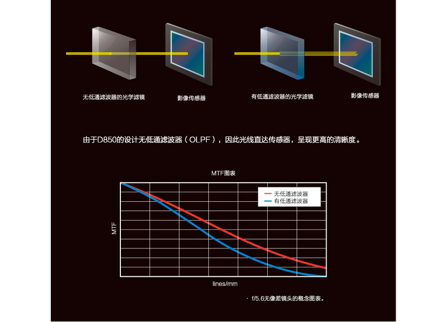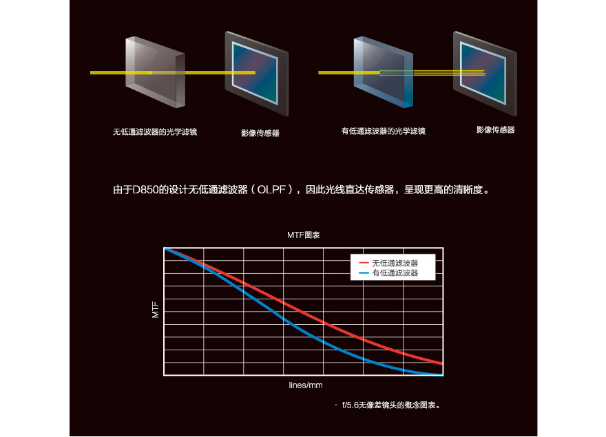 * 在尼康测试环境下:50mm, f/1.4镜头,无限远,-1.0 m-1