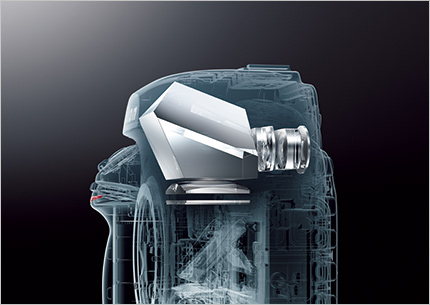 D850 采用约 0.75 倍放大倍率光学取景器 *,提供宽广的视野,便于确认拍摄对象,取景器采用 1 片非球面镜片和折射良好的聚光镜片,既能使机身实现薄型设计,又能保持足够的远视点。高对比度取景器信息显示采用有机EL 显示元件,在明亮的阳光下也能方便浏览。
