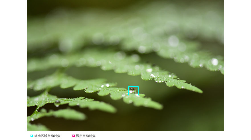 D850 的微点自动对焦(AF)模式在即时取景微距拍摄时尤其有用。它使用传统的标准区域自动对焦(AF)的约 1/4 大小的对焦面积,在细节处获得准确对焦,当对焦于花蕊等较小拍摄对象时尤其有用。