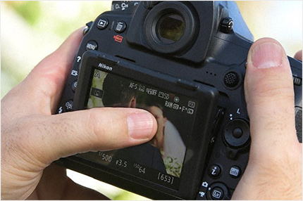 无论是降低相机高度进行微距摄影,还是把相机朝上对准繁星闪烁的夜空,D850 可翻折液晶显示屏都能有助于您轻松操控难以拍摄的角度。即使相机安装在三脚架上,显示屏也能流畅打开,并且采用当前尼康数码单反相机广泛采用的触摸屏功能。从菜单设定到查看拍摄的图像,为用户带来更多的便利。归功于约 235.9 万画点高分辨率显示屏的显示,用户通过捏拉放大,能轻松查看图像和确认对焦细节,这对于使用约 4,575 万有效像素拍摄是十分重要的。