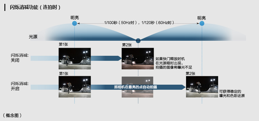 注:静音拍摄时可能产生滚动快门失真。连拍时AF/AE固定于第一张照片。