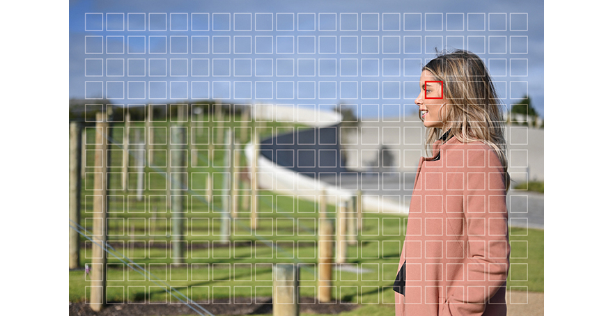 相机使用所有对焦点的信息,自动检测主要拍摄对象并对其进行对焦。当“自动区域AF脸部侦测”选择为“开启”时,相机会自动检测脸部,如果有多个人脸,用户可以选择要对焦的人脸。得益于良好的面部侦测和对象跟踪算法,如果拍摄对象转动头部或者短暂地移开视线时,自动对焦仍能继续跟踪对象的脸部。