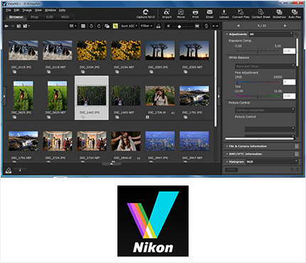 尼康的“捕影工匠”软件提供处理RAW文件的优化方法。您可以使用滑动条调整曝光补偿、白平衡、优化校准、动态D-Lighting和减少噪点等选项。也兼容JPEG和TIFF文件。