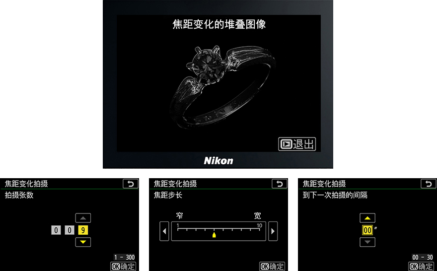 当拍摄含有不同对焦距离的多个拍摄对象或者制作昆虫或花朵的标本图片时,摄影师可能希望让每一个对象都锐利对焦。Z 7的焦距变化拍摄功能,可拍摄多达约300幅的一系列图像,同时从起始点到无限远逐渐自动移动对焦位置。快门释放间隔和焦距补偿可以选择。而且,Z 7采用的焦距变化的堆叠图像功能可自动创建黑白预览图像,用于图像合成前*1确认*2对焦的区域,使对焦堆叠更方便使用。