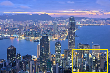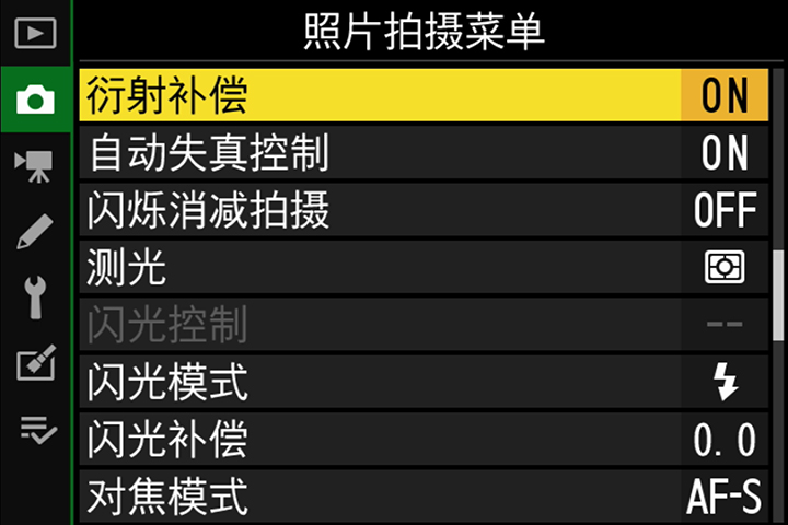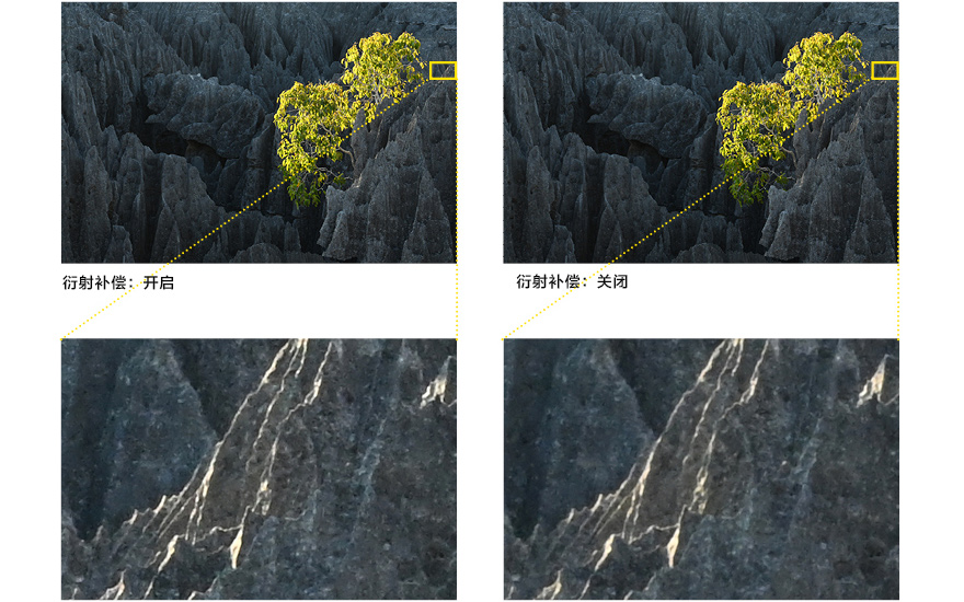 使用数码相机时,如果在拍摄都市风光或风景时选择小光圈来增加景深,可能会因衍射而导致图像的锐度下降。 Z 7采用的衍射补偿功能可在使用小光圈时自动减轻衍射效应。