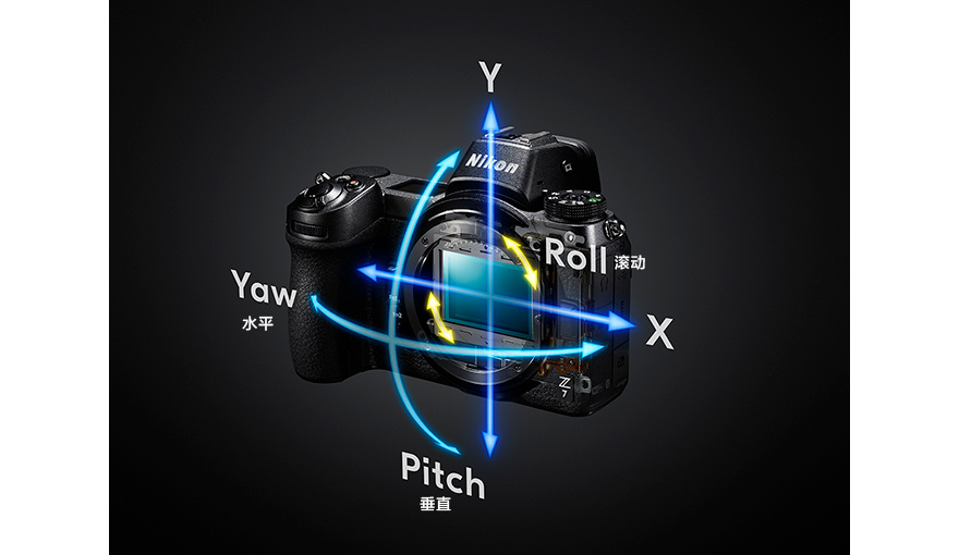 Z 7采用相机内VR减震装置,可提供相当于快门速度提升约5档*1的效果。它使用图像的运动矢量信息以及陀螺仪传感器检测相机的抖动,然后驱动VR减震装置在五个方向上提供补偿,其效果在视频拍摄中会比较明显。