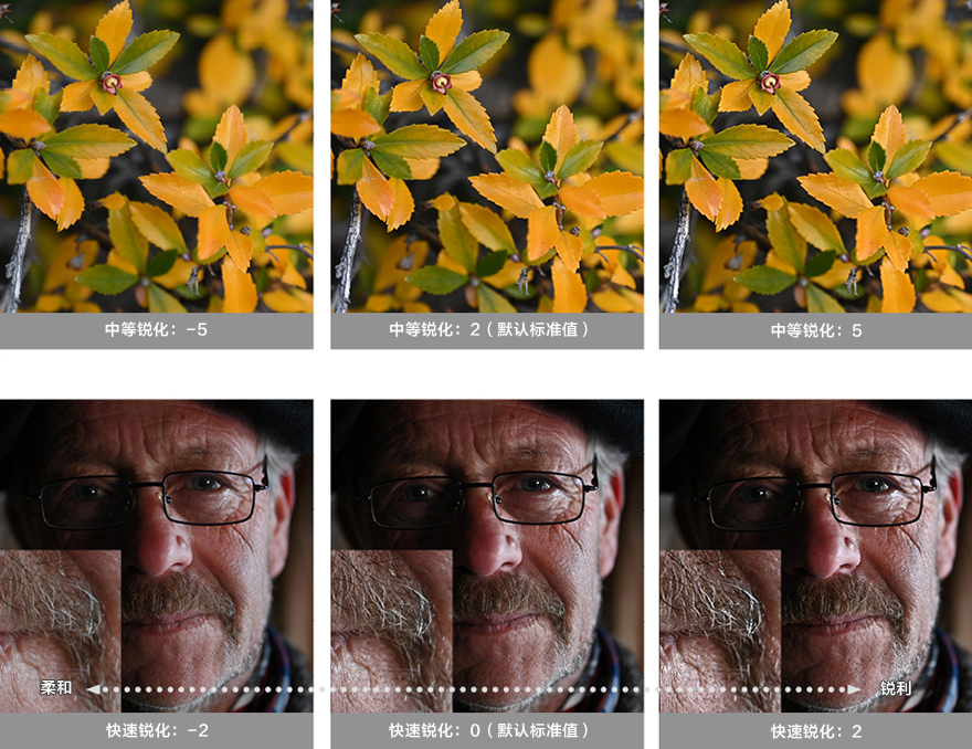 Z 7为尼康优化校准系统引入了中等锐化参数*,可以更精细地控制画面内的各种纹理,使图像看起来更锐利或更柔和。