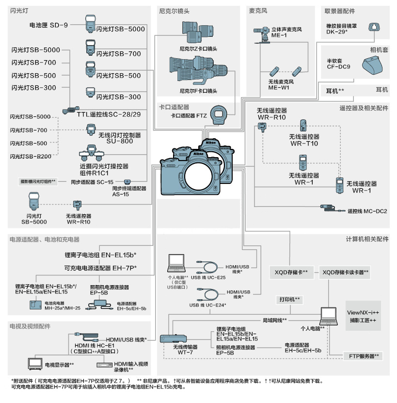 *2 Z 7和SB-5000进行无线电控制无线闪光需要搭配无线遥控器WR-R10。