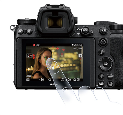 Z 7的大尺寸高分辨率可翻折显示屏提供触摸屏功能。利用约210万画点高分辨率显示屏,可通过捏拉以及滑动操作来查看图像和确认对焦。显示器让您能够从高角度或低角度拍摄,为您的拍摄提供更大的灵活性和创造力。