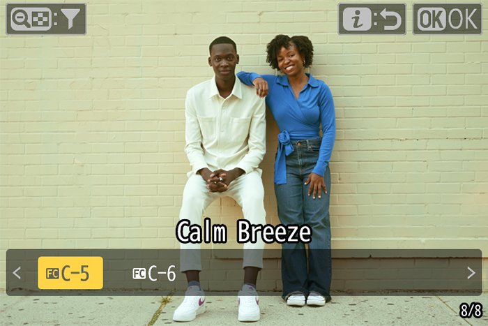 Z50II配备的优化校准按钮提供一键访问色彩方案和优化校准的功能。借助这些色彩预设,用户可以通过简单直观的操作,为照片和视频赋予独特风格,彰显个人特色。即使在自动拍摄模式下,您也可以使用这些滤镜,由相机为您处理复杂的设置。