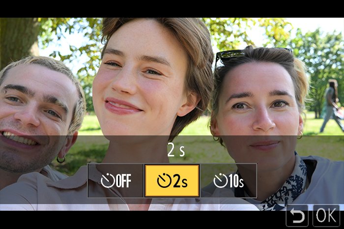 Z50II的视频自拍定时器为您提供数秒的缓冲时间,让您可以在相机开始录制之前就位,也就是说在开始讲话之前从相机走到拍摄位置时的,不会录制这些后续也不得不剪掉的尴尬过程。您可以在Z50II上设置成按下视频录制按钮后2秒或10秒倒计时,然后相机再开始拍摄。