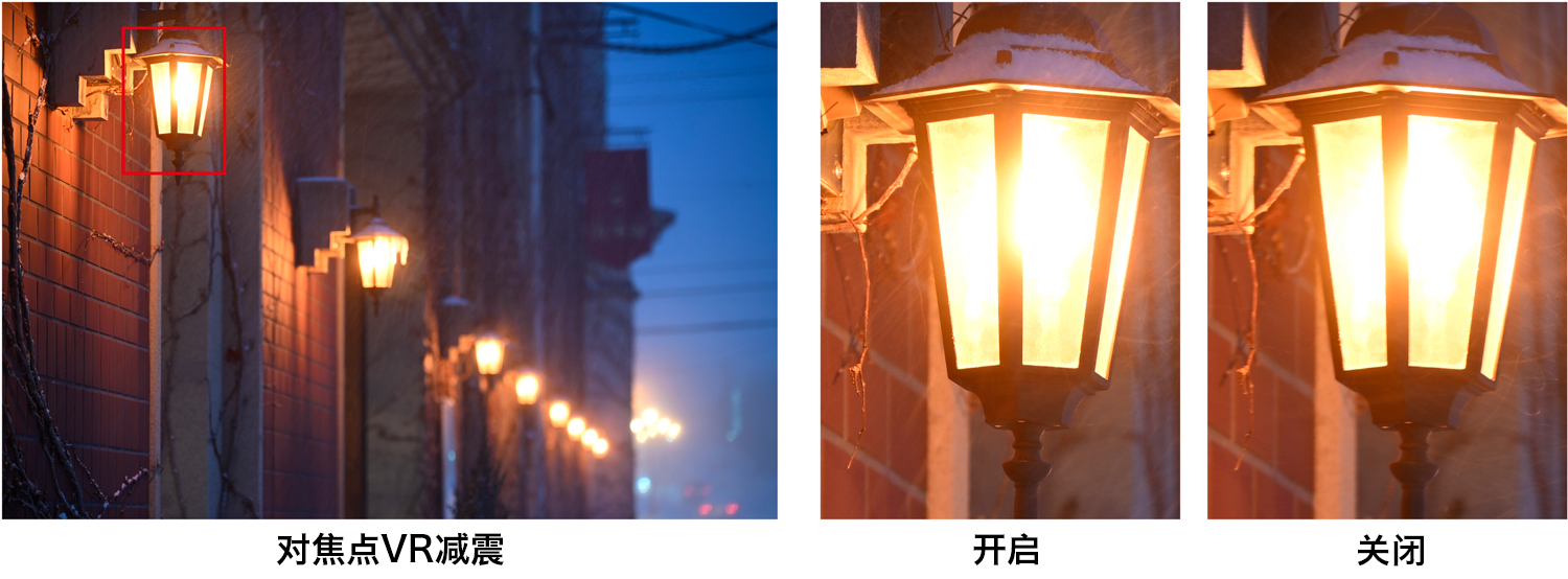 传统的VR减震系统在画面中心附近稳定图像,这可能会导致边缘模糊,使用广角镜头时尤为明显。对焦点VR减震*可减少聚焦区域的模糊,即使拍摄对象靠近画面边缘也是如此。无论主要拍摄对象在画面中的位置如何,都能清晰地捕捉到拍摄对象。
