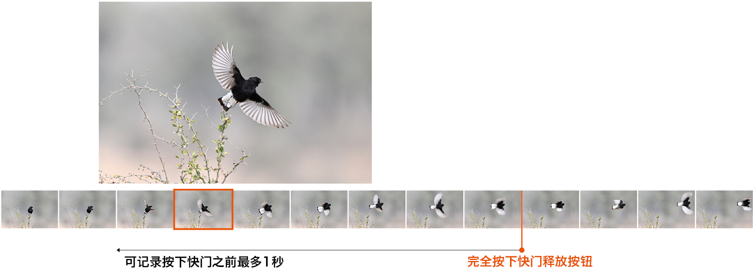 • 高达约120幅/秒的预拍功能,能够在完全按下快门释放按钮前1秒捕捉图像