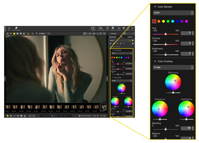 尼康工坊现在为想要打造自己独特风格的用户提供了一个激动人心的选项。尼康的尼康工坊是一款用于浏览、处理和编辑图像的免费软件,现在增加了一项名为灵活颜色优化校准的新功能。与传统的优化校准不同,这项新功能提供更广泛的调整范围。通过直观的界面,它可以使用色彩混合器对八种颜色的色调、色度和亮度进行调整,还可以通过调色对高光、中间调和暗部进行更精确的调整。一旦您定制了所需的风格,只需将其保存为自定义色彩优化校准,并通过存储卡应用到Z6III上。这样,您就可以轻松地拍摄出具有自己独特风格的照片和视频。