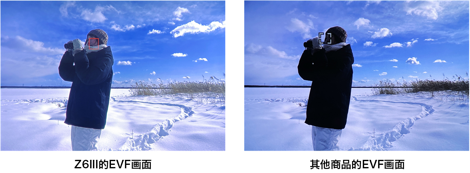 Z6III的EVF亮度达到了4000cd/m²,是Z6II的4倍,比Z9的亮度更高,这保证了即使在明亮的光照环境下,例如海滩上的阳光或被雪覆盖的田野,您也能清晰地查看主体细节。