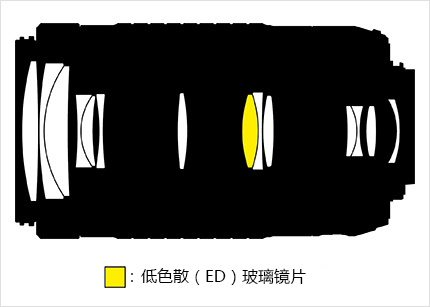 低色散(ED)玻璃镜片能抑制色差,同时提升锐度和对比度。即使使用最大光圈,也能在整个变焦范围提供良好的光学性能。