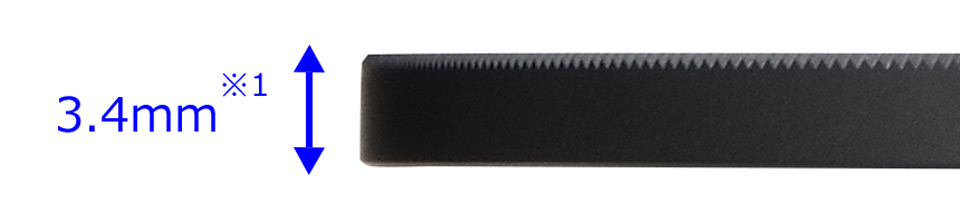与一般的保护滤光镜相比,厚度减少约30%,实现3.4mm*1(φ95mm为3.9mm)的薄型框架设计,即使使用,也不容易产生暗角*2。滤光镜框架的表面利用黑色金属铝材进行防刮处理。此外,在滤光镜框架的前端实施滚花加工,提高手指的抓握力,使滤光镜容易拆卸。滤光镜框架实施防止光反射的亚光处理,玻璃边缘进行涂墨处理防止斜面照射的入射光形成内反射,有助于减少背光时的鬼影和眩光。