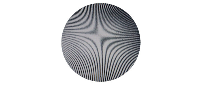 透射波面精度和反射波面精度是衡量镜头光学精度的指标。透射波面精度是指光通过时,镜头内部的波面均匀呈现程度的指标。安装致光滤光镜II的镜头在透射波面精度上表现出清晰的条纹图案,并且在接近圆周时少有弯曲,呈现平行的直线,间隔均匀,少有扰动。