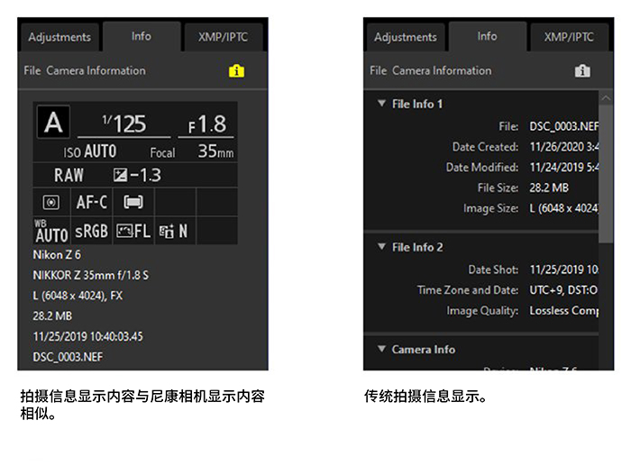 • XMP/IPTC信息的编辑和预设管理功能与ViewNX-i相仿